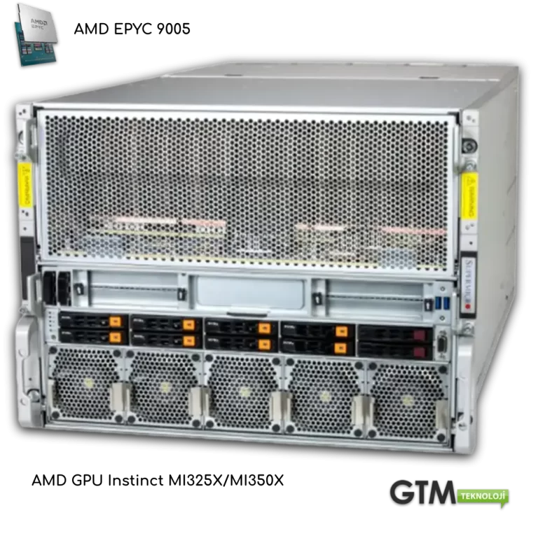 Supermicro AS-8126GS-TNMR 8U GPU sunucu, çift AMD EPYC™ işlemci ve 8 adede kadar AMD Instinct MI350X hızlandırıcının gücünü birleştirerek Yapay Zeka (AI) ve HPC pazarındaki en kritik çözümlerden biridir. En yeni CDNA 4 mimarisi ve rakipsiz 288 GB HBM3e bellek kapasitesi sayesinde bu sistem, Büyük Dil Modelleri (LLM) eğitimi ve çıkarım süreçlerinde NVIDIA rakiplerine kıyasla daha yüksek verimlilik ve düşük Toplam Sahip Olma Maliyeti (TCO) sunar. Supermicro’nun optimize edilmiş yedekli güç ve Infinity Fabric™ Link entegrasyonu ile AS-8126GS-TNMR, veri merkezlerinin gelecekteki ölçeklenebilirlik ihtiyaçları için stratejik bir yatırımdır.