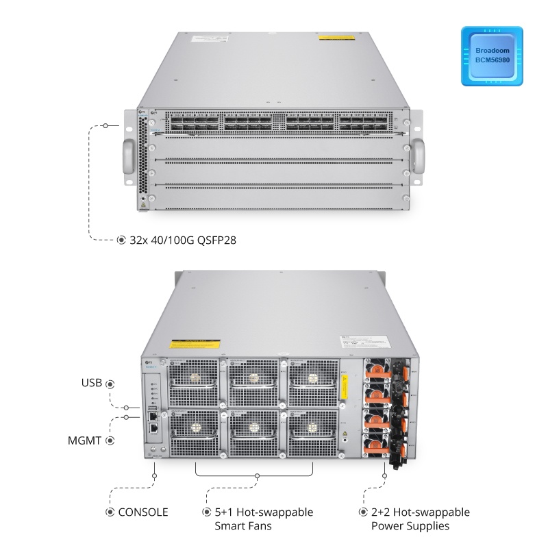 Customized FS NC8400-4TH, 4-Slot 4U Ethernet L3 Data Center Chassis Switch, Supports 4x 40/100/400Gb Line Cards, Supports MLAG, Broadcom Chip, Support RoCE 184513