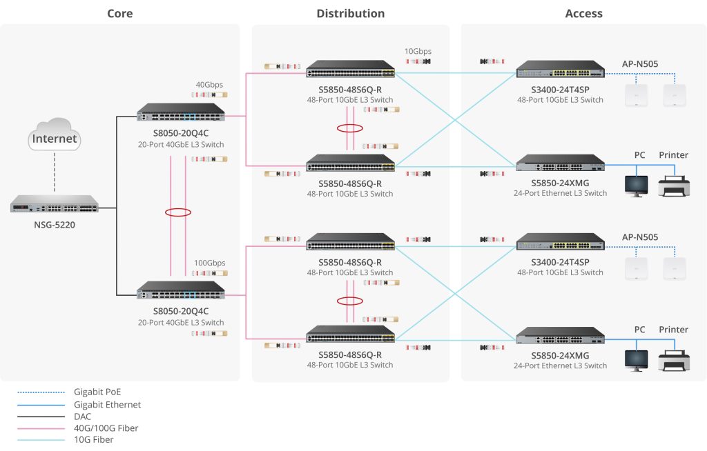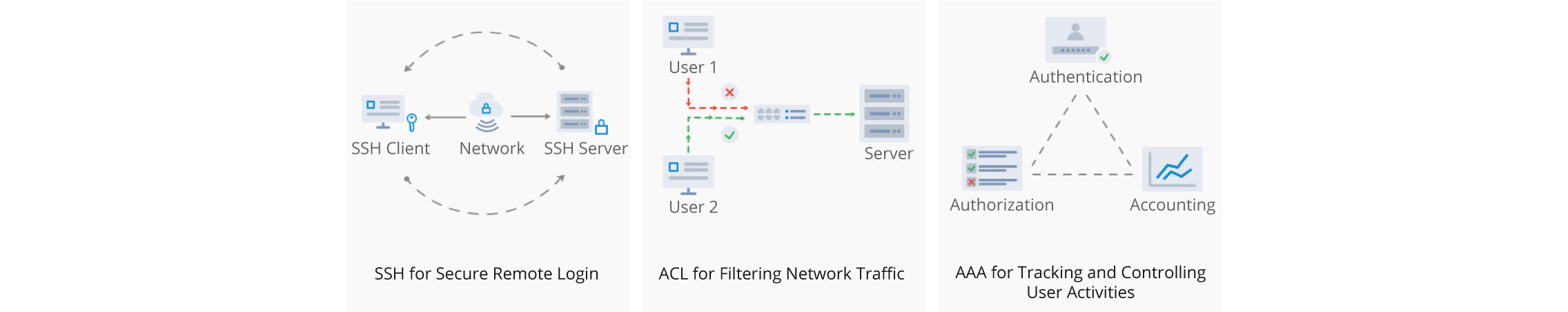 SSH, ACL, AAA vb. ağ düzeyinde güvenlik ve istikrar yetenekleriyle işletmeler, kampüsler ve finans sektörü için ağ tehditlerine karşı savunma sağlar.