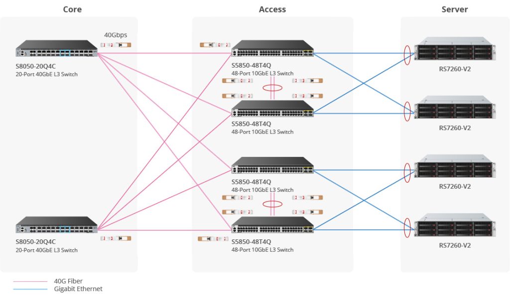 Tüm portlar MLAG’ı destekler S3950, S5800, S5850 ve S8050 serisi anahtarlarla karışık yapılandırmalı MLAG’yi destekleyin Yük dengeleme ve yedeklilik için 64 yollu ECMP yönlendirmesini destekleyin LACP, VRRP, VARP, Smart Link, BFD, ERPS, G.8031, G.8032, Yük Dengeleme vb. desteği SP + WDRR karma planlamayı destekler COS/DSCP’ye dayalı trafik sınıflandırmasını |