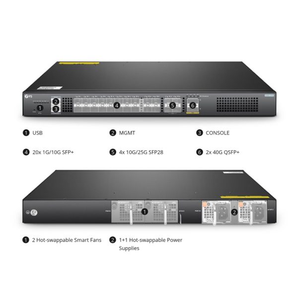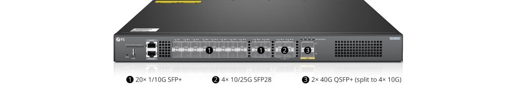 S5860-20SQ 24 portlu 10Gb Ethernet Layer3 switch, sanal yığınlamayı destekleyen 20x 1G/10G aşağı bağlantı, 4x 10G/25G SFP28 ve 2x 40G QSFP+ (4x 10G SFP+’a bölünebilir) yukarı bağlantı özelliğine sahiptir. Bu yönetilen kurumsal anahtar, 760 Gbps anahtarlama kapasitesi ve 565 Mpps iletim hızı sağlamak için son teknoloji Broadcom yongalarını kullanır. Üstün işlem performansı ve ağ güvenilirliği için yedekli sıcak değiştirilebilir güç kaynakları, çift sıcak değiştirilebilir akıllı fanlar ve donanım düzeyinde çift flaş yonga ile donatılmıştır. FS Agile S5860-20SQ yönetilen anahtar, büyük ölçekli kampüs ağ birleştirmeleri, küçük ve orta ölçekli ağ çekirdekleri için idealdir ve veri merkezleri, uzak ofisler ve WAN uzantıları gibi yüksek hızlı iletim ve uzun mesafeli bağlantı gerektiren senaryolar için kullanılabilir.