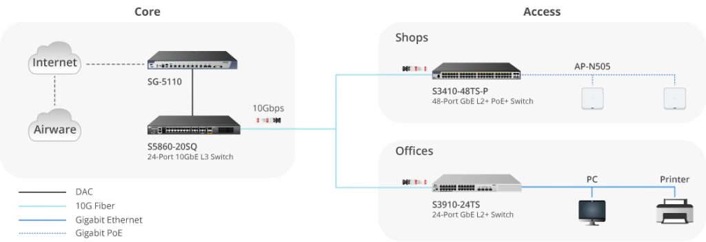 Airware, otel zincirleri, perakende zincirleri, şirket şubeleri, üniversite şubeleri gibi şubeleri olan endüstriler için uygun olan ağ cihazlarının yönetimini birleştirir.