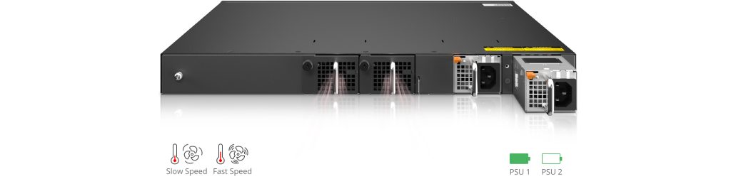 Sistemi kapatmadan çıkarılıp değiştirilebilen PSU’lar, üstün soğutma, gürültü ve güç azaltımı için önden arkaya hava akışına sahip değişken hızlı fanlar.