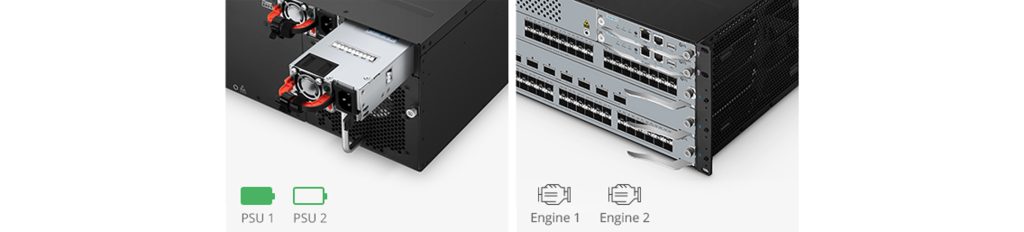 Support the Spanning Tree Protocols (IEEE802.1d STP, IEEE802.1w RSTP, standard 802.1s MSTP) Support Virtual Router Redundancy Protocol (VRRP) Support Rapid Link Detection Protocol (RLDP) Support Rapid Ethernet Uplink Protection Protocol (REUP) Support GR perfect restart, BFD fast forwarding detection and other mechanisms Support modular power redundancy |