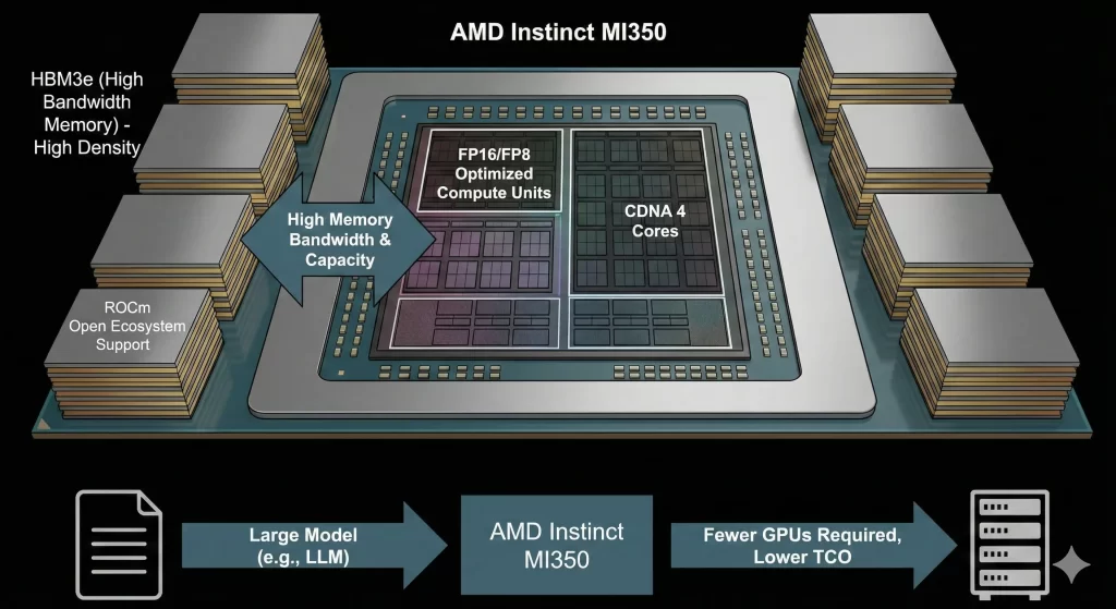 Örnek Senaryo: Rakip kartlarla 8 GPU gerektiren bir model, MI350’nin yüksek belleği sayesinde 4 GPU ile çalıştırılabilir. Bu, sunucu maliyetlerinde %50 tasarruf demektir.