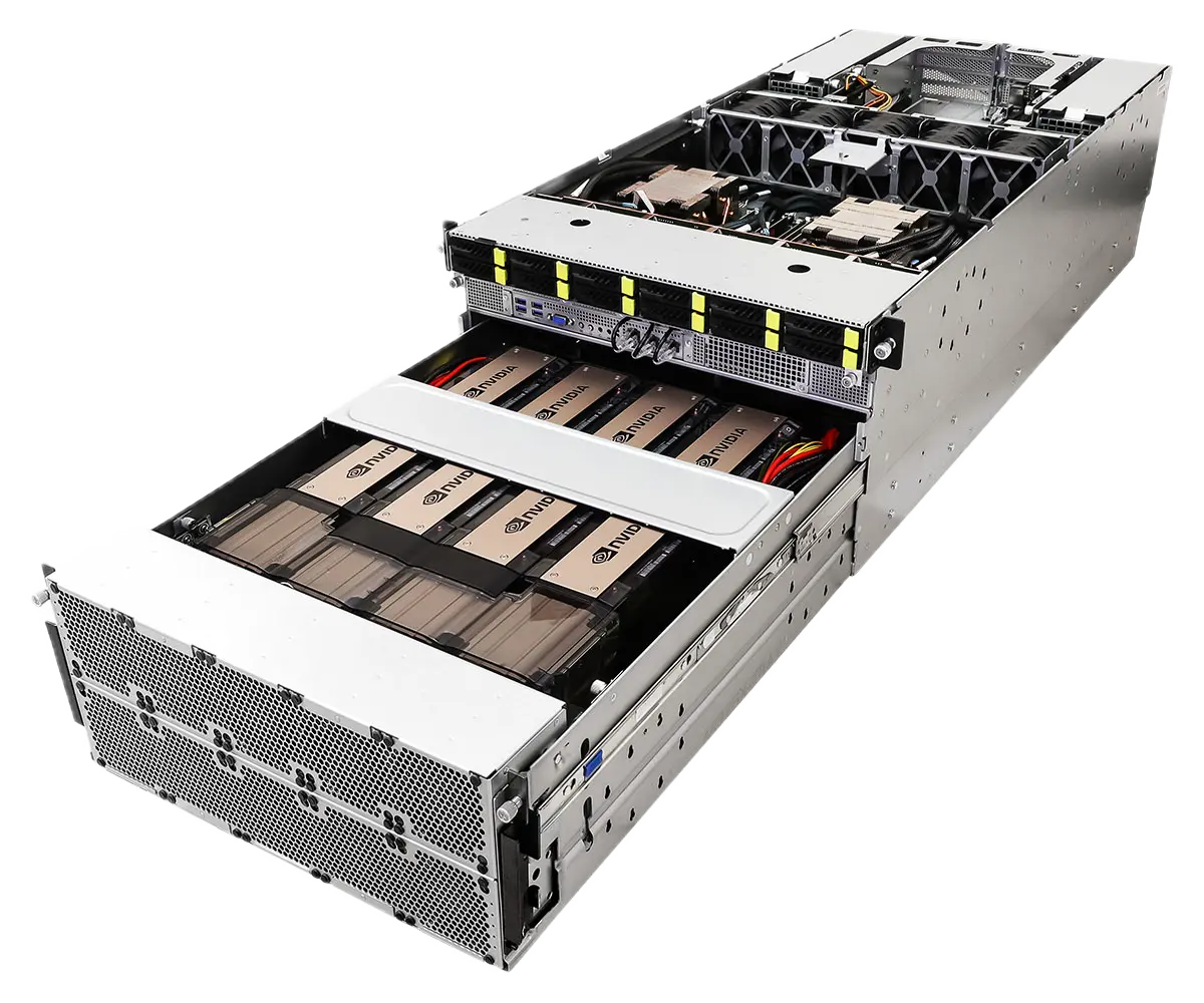 8 adede kadar **600W NVIDIA RTX 5090 veya RTX PRO 6000 Blackwell | NVIDIA L40S | NVIDIA H200 / H100 kurumsal GPU desteği. Entegre Eğitim ve Çıkarım (Inference) için optimize edilmiş mimari.